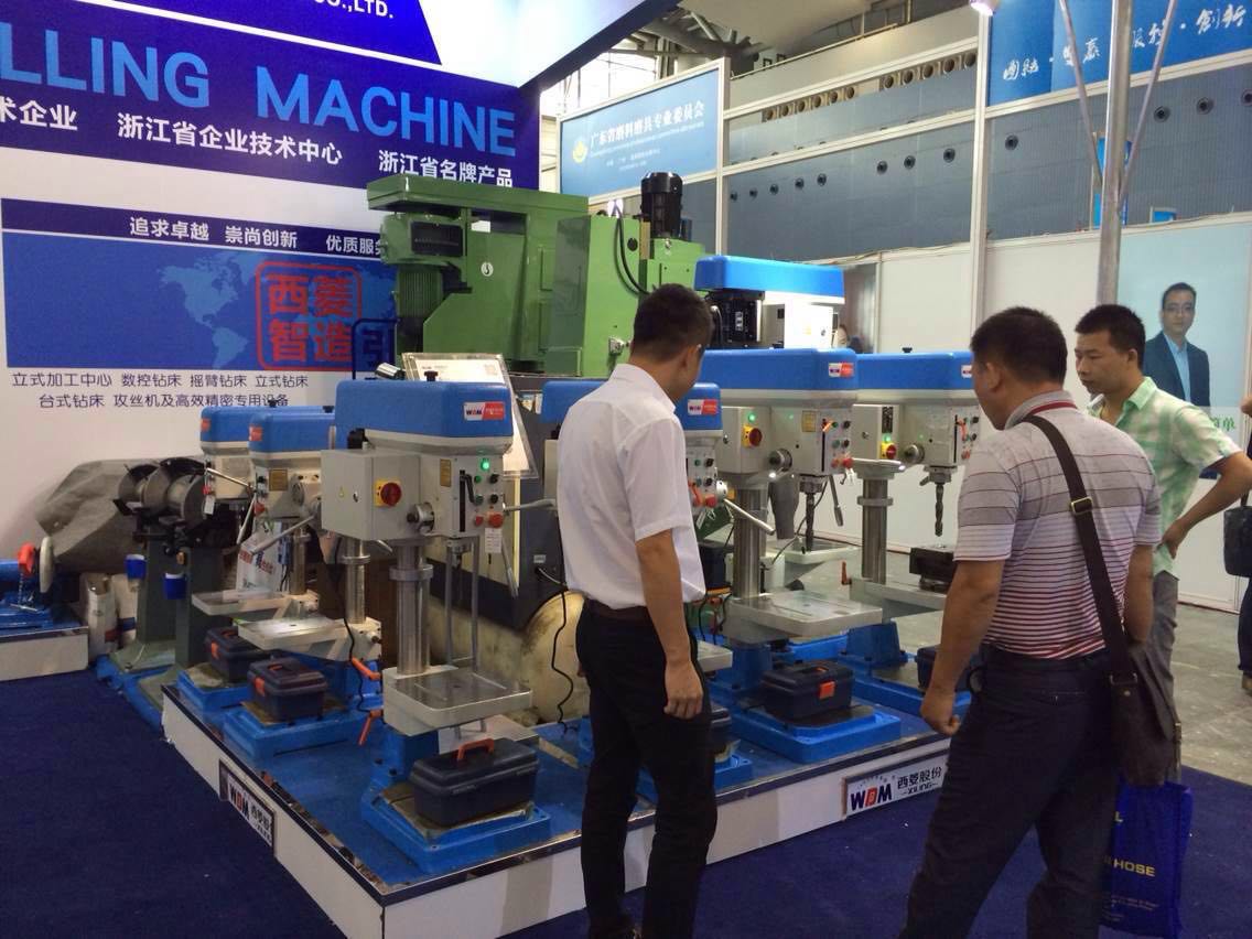 新产品一角:本次五金展,西菱公司带来的新产品:B1系列精品钻床(主轴箱升降)、ZB系列高标准强力自动进刀钻床、ZD系列改制钻床、G系列强力钻床、数控台式攻丝机在展会现场以其特有的产品优势成为了设备类展品